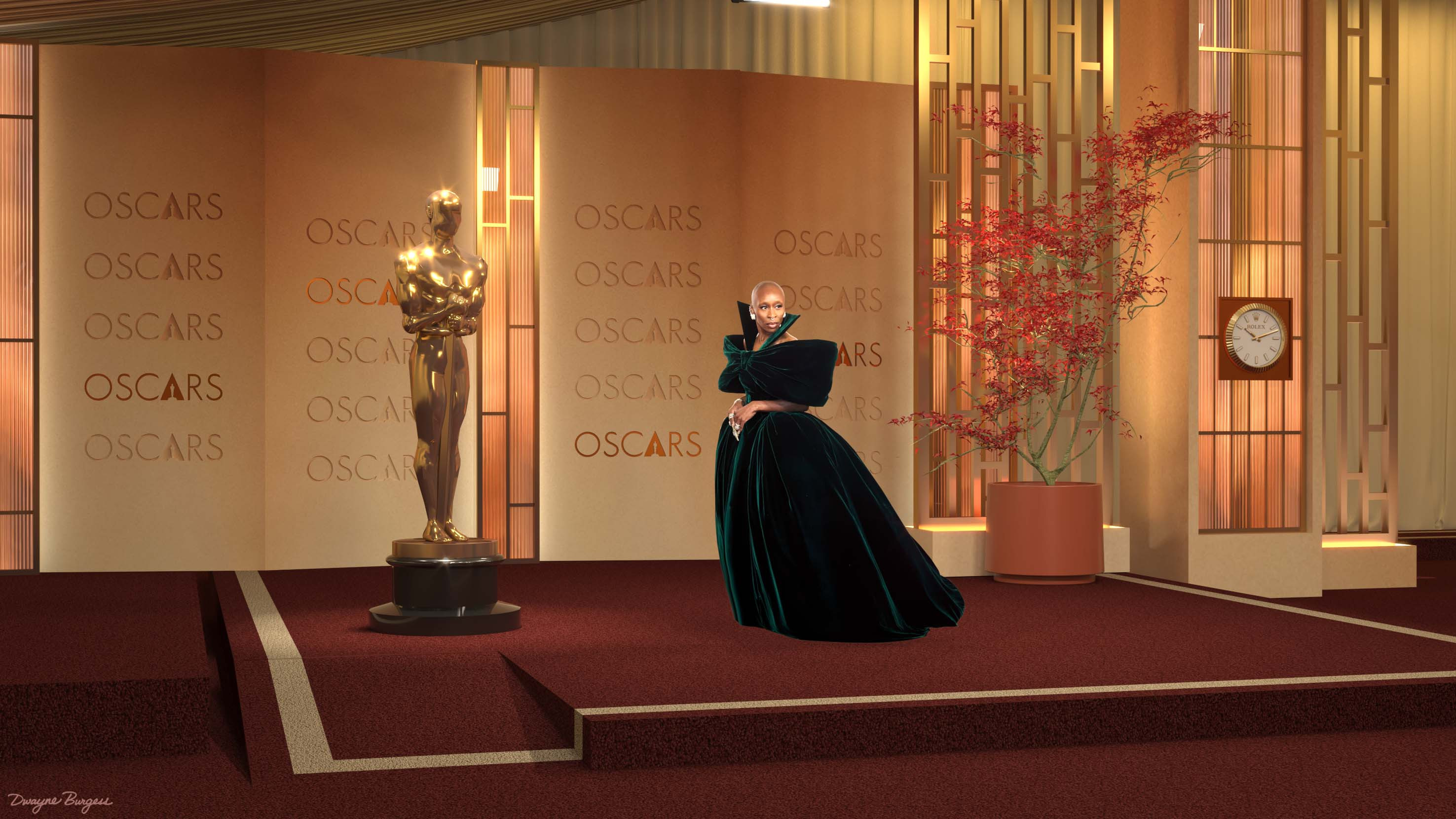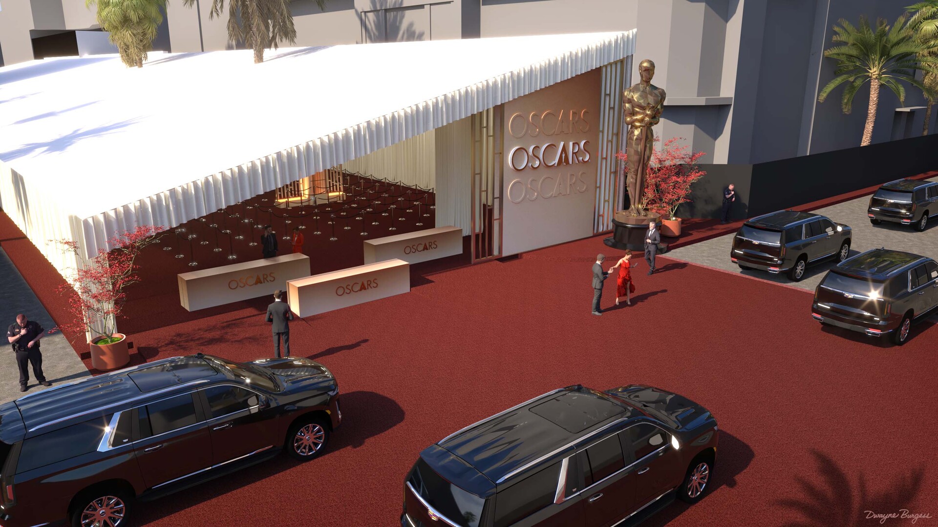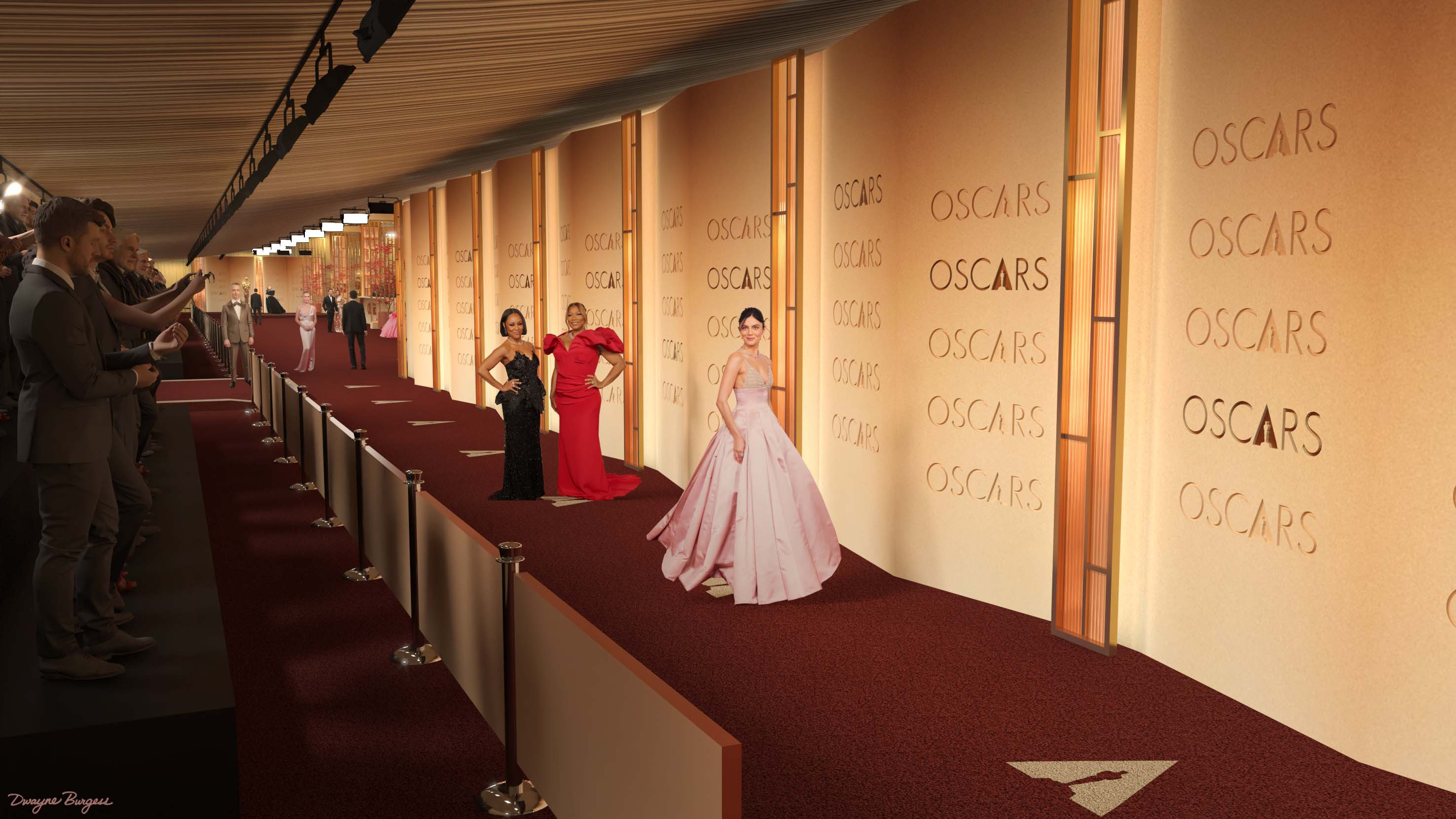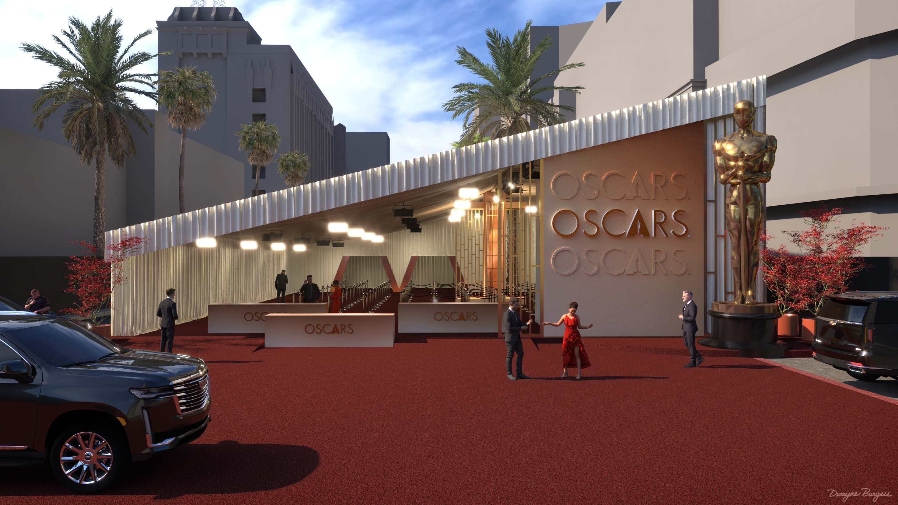 Oscars 2026 Red Carpet renderings created in SketchUp + V-Ray. Production design by Jay Heiserman. ©A.M.P.A.S.® Oscar statuette ©A.M.P.A.S.®