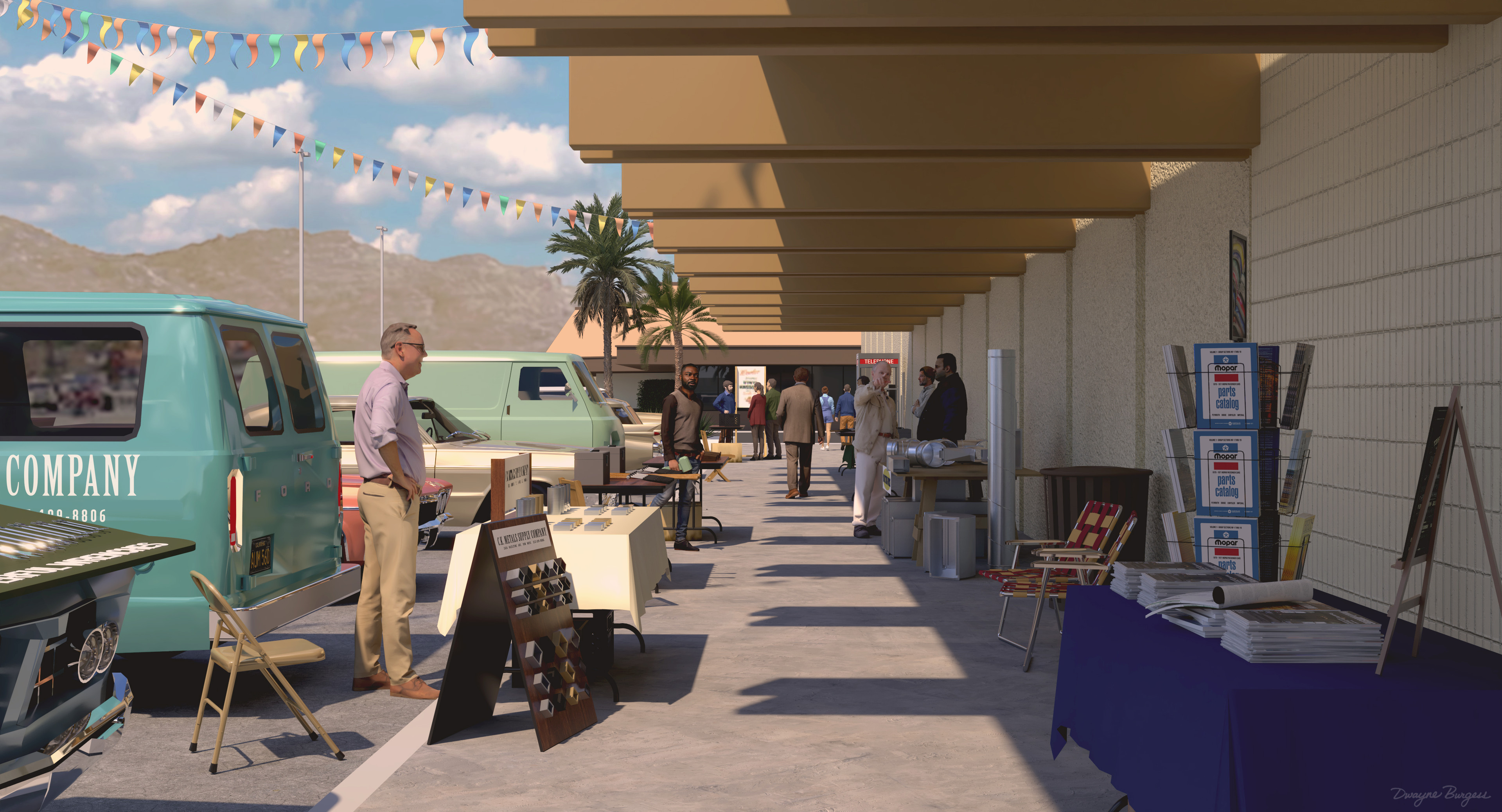 Exterior Community Center rendering from Government Cheese based on real life location in Burbank, CA. Production Design by Warren Alan Young.